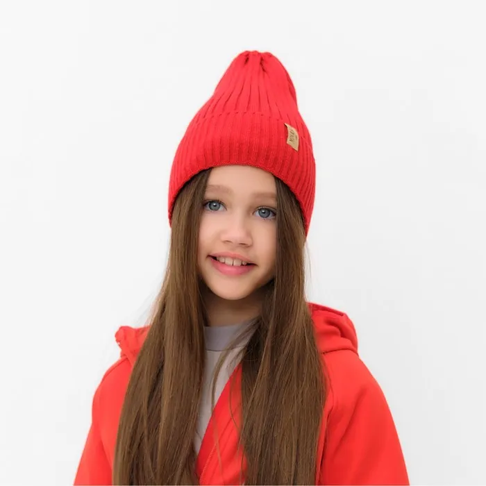 Шапка детская MINAKU с отворотом р-р 56-58, цв. красный