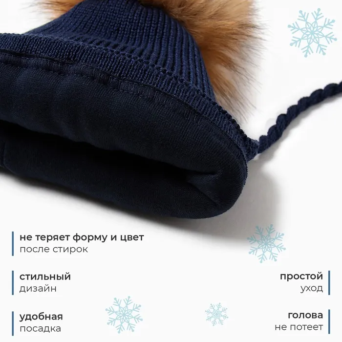 Шапка детская MINAKU с утеплителем, размер 42-44 (6-9 мес.), тёмно-синяя — Характеристики