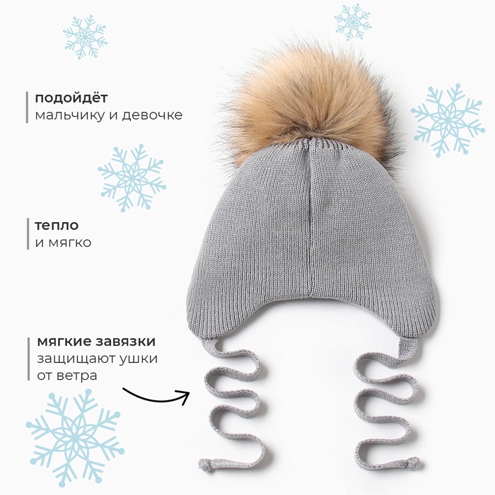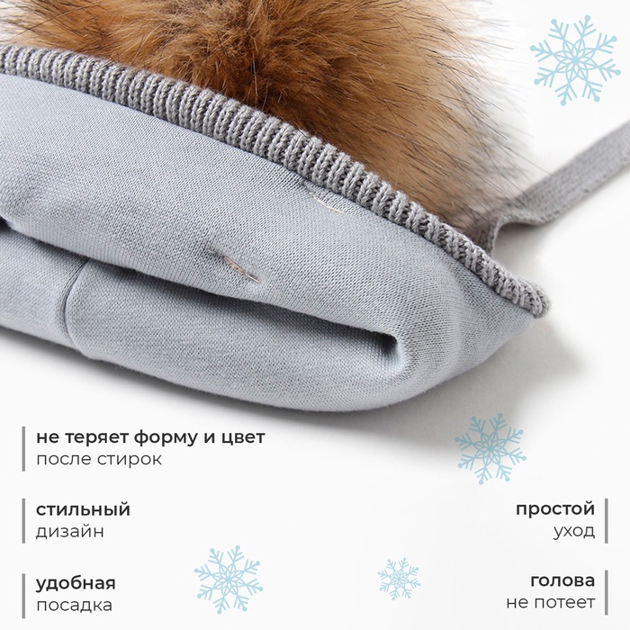 Шапка детская MINAKU с утеплителем, размер 44-46 (9 мес. - 1 год,), серая — Характеристики