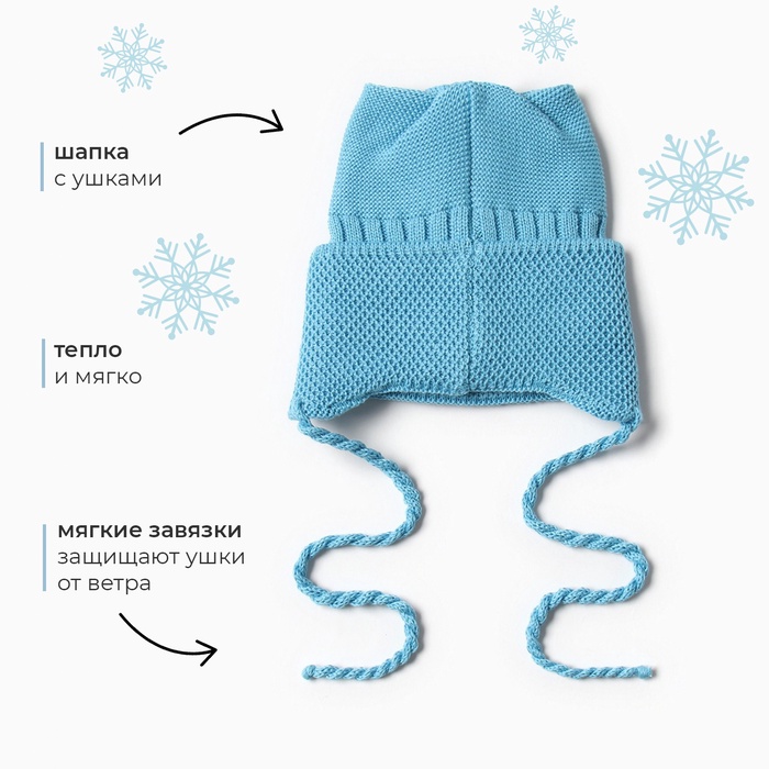 Шапка детская с ушками MINAKU р-р 35-40, цвет морской-волны — Характеристики