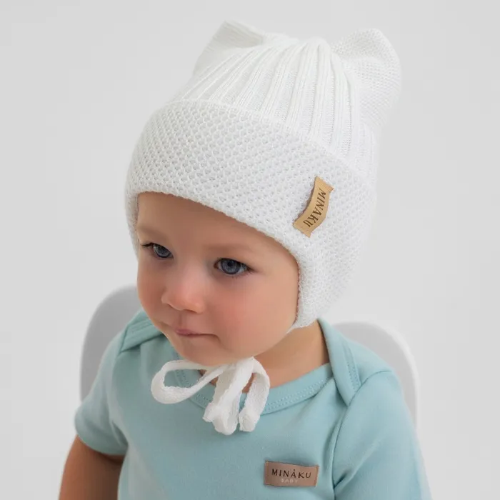Шапка детская с ушками MINAKU р-р 42-44, цвет молочный