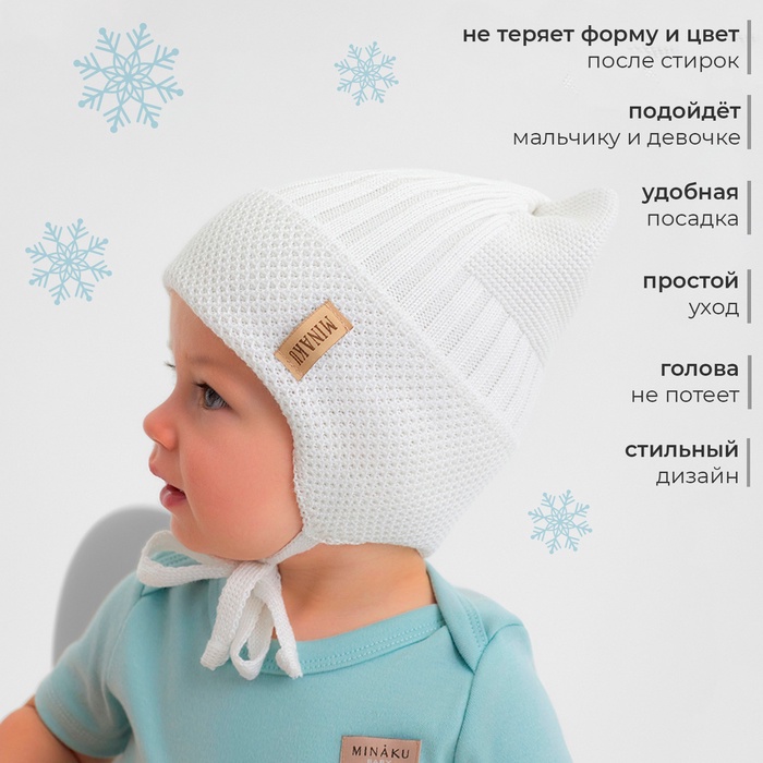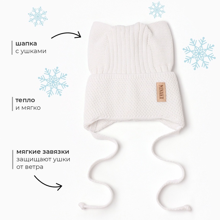 Шапка детская с ушками MINAKU р-р 46-48, цвет молочный — Характеристики