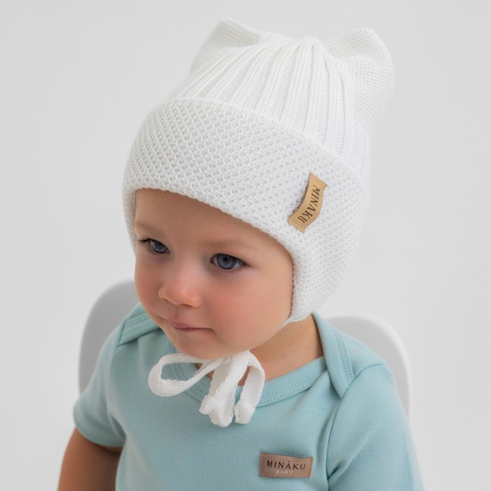 Шапка детская с ушками MINAKU р-р 46-48, цвет молочный