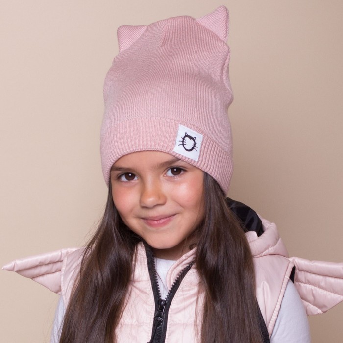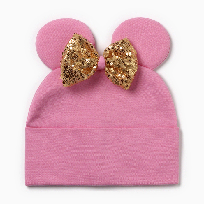 Шапка детская "Мышка", цвет розовый, размер 46-50