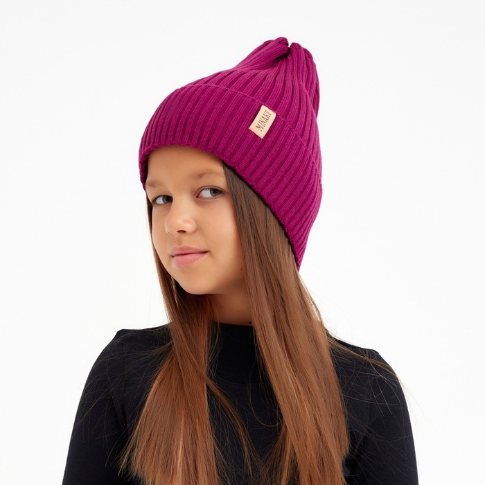 Шапка детская MINAKU с отворотом р-р 56-58, цв.малиновый