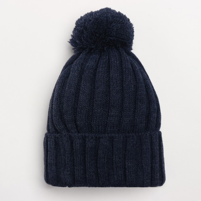 Шапка вязаная детская, цвет синий, размер 35-38см (1-3 мес.)