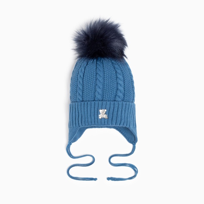 Шапка для девочки вязаная, цвет синий, размер 44-47 см (9-18 мес.)