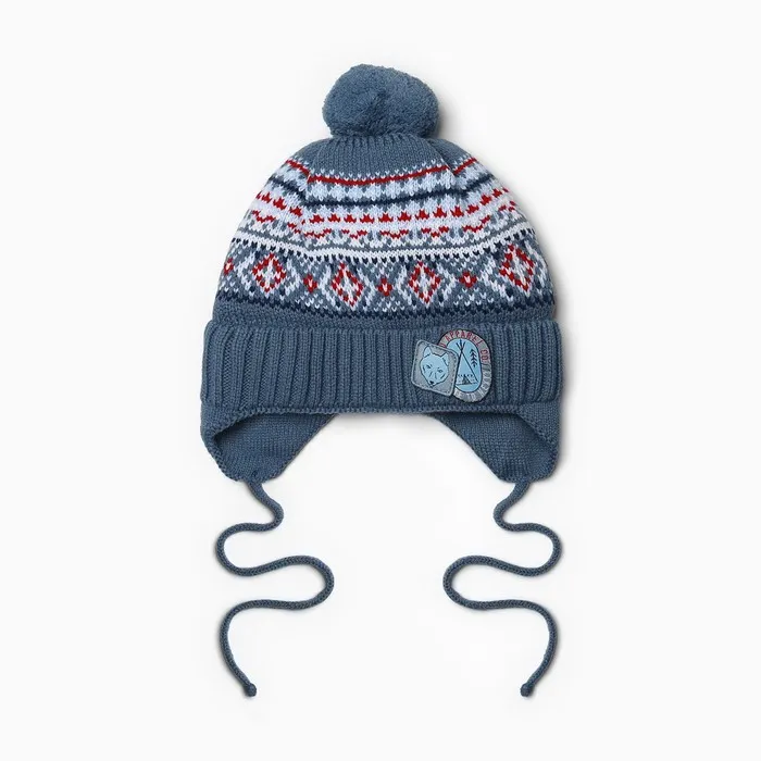 Шапка "Пингви" для мальчика, цвет синий, размер 46