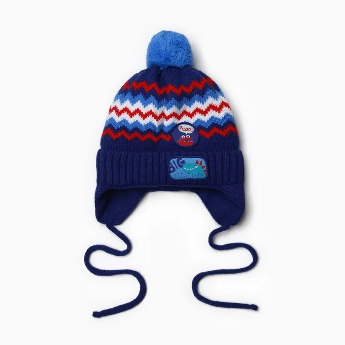 Шапка "Пингви" для мальчика, цвет синий, размер 46