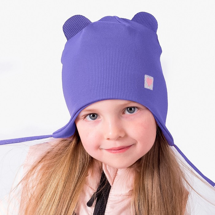 Шапка трикотажная для девочки, цвет сиреневый/сердечко, размер 50-54