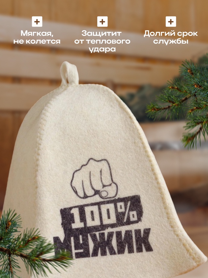 Шапка для бани "100% МУЖИК" с принтом, белая — Характеристики