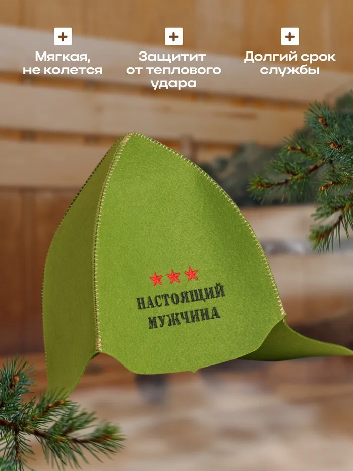 Шапка для бани "Буденовка. Настоящий мужчина" экофетр — Характеристики