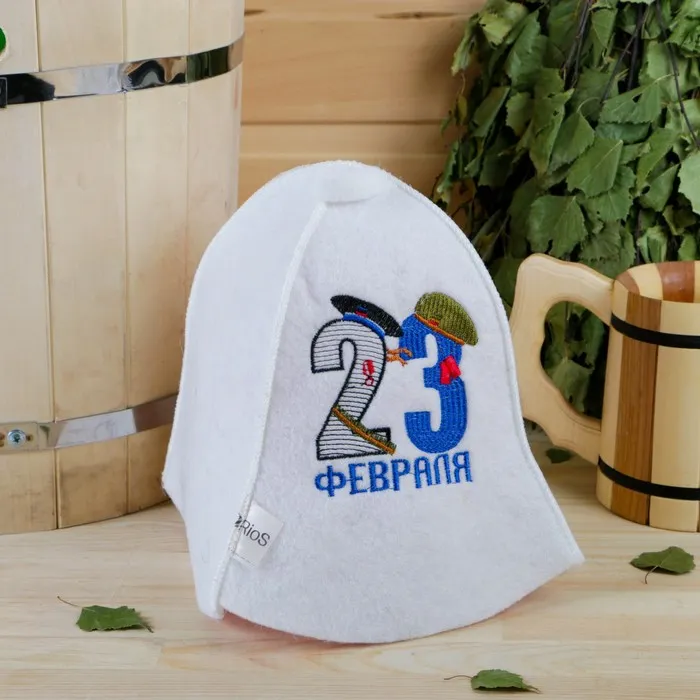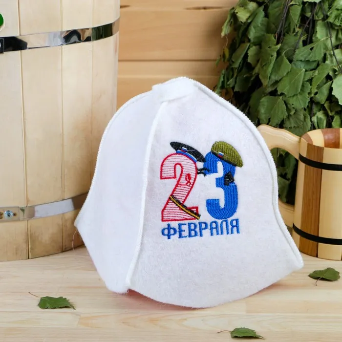 Шапка для бани и сауны «23 Февраля», полиэфир 70%, шерсть 30%, белая, «Добропаровъ»