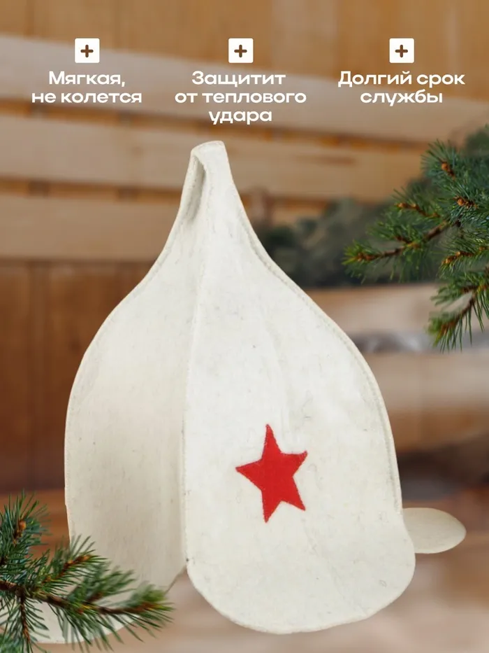 Шапка для бани и сауны «Буденовка», войлок, светлая, «Добропаровъ» — Характеристики