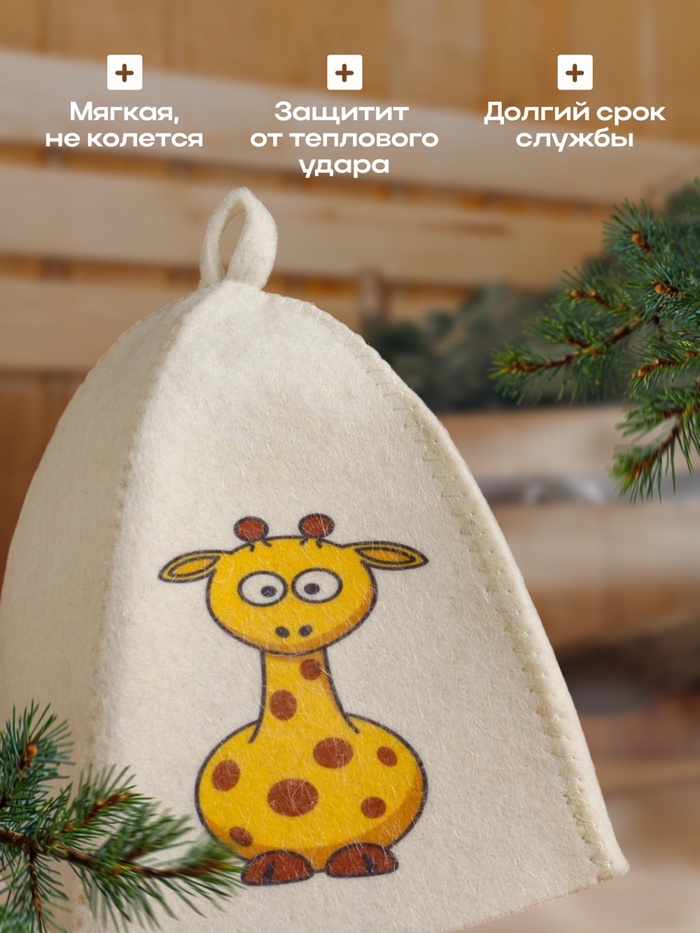 Шапка для бани и сауны детская, с принтом «Жираф», полиэфир 20%, шерсть 80%, белая, «Добропаровъ» — Характеристики