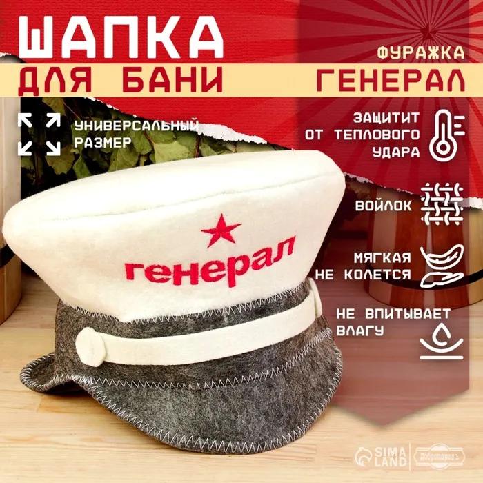 Шапка для бани и сауны «Генерал», полиэфир 70%, шерсть 30%, «Добропаровъ» — Характеристики