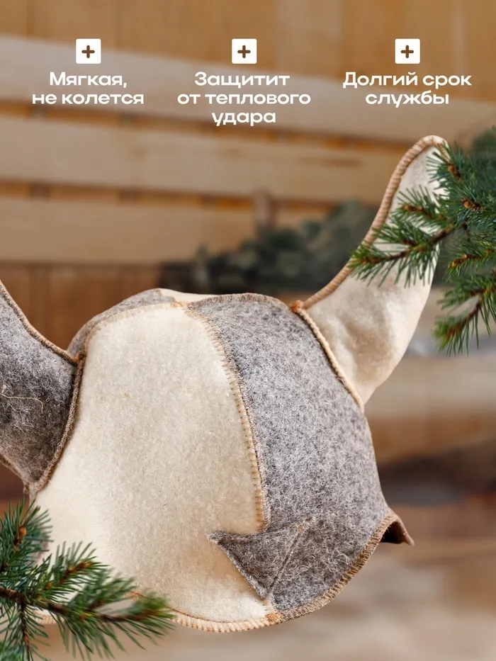 Шапка для бани и сауны, комбинированная «Шлем викинга», войлок, «Добропаровъ» — Характеристики