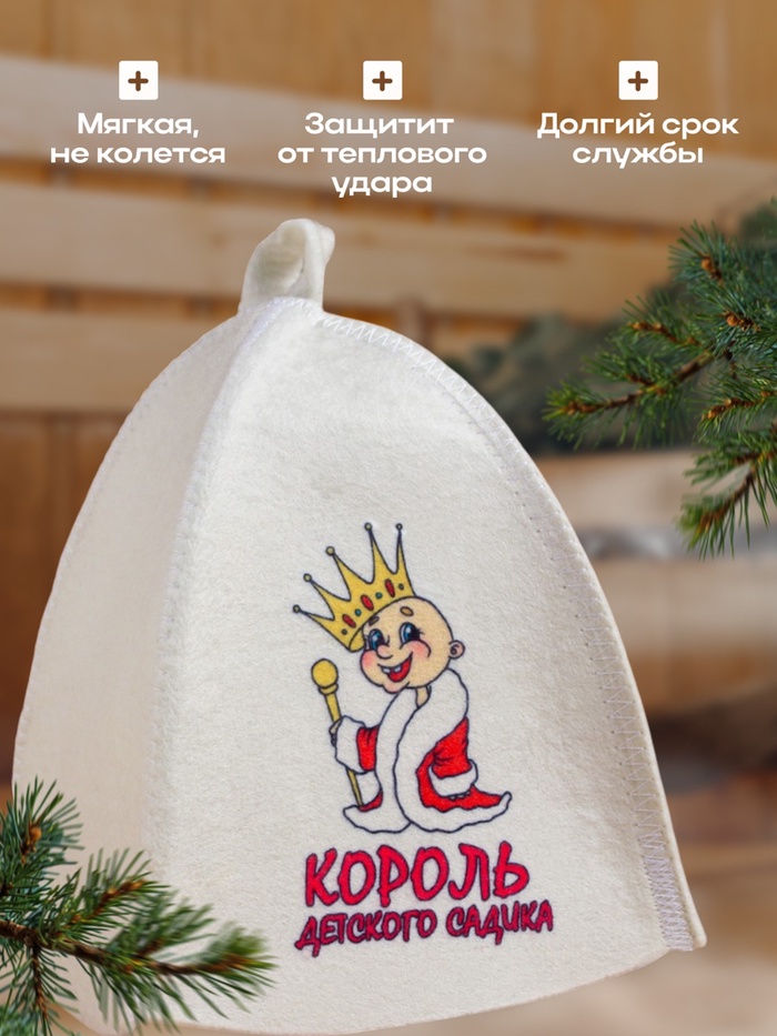 Шапка для бани и сауны «Король детского садика», полиэфир 70%, шерсть 30%, детская, «Добропаровъ» — Характеристики
