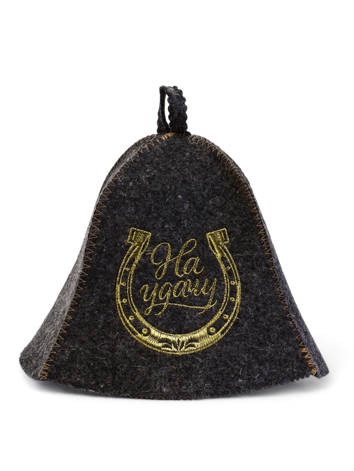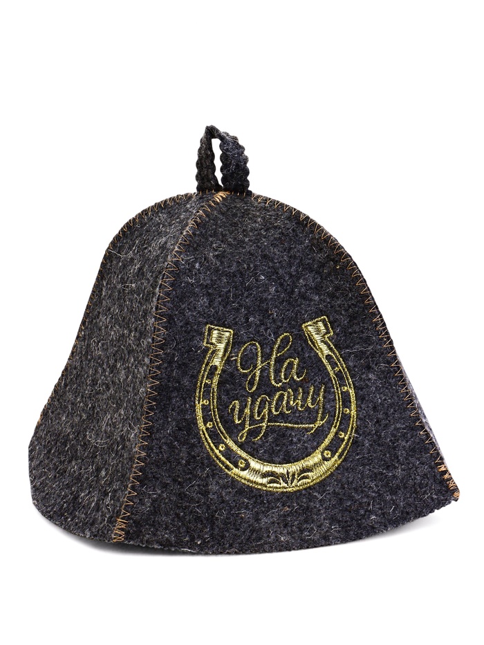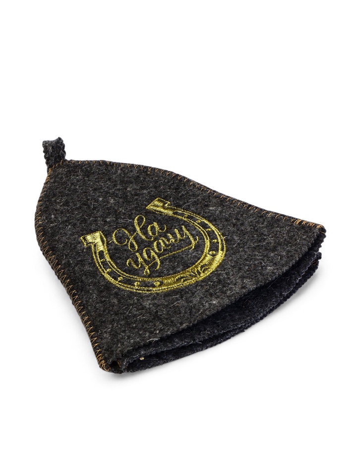 Банная шапка «На удачу» серая с вышивкой — универсальный аксессуар для парной. Форма подходит мужчинам и женщинам, а комбинированный материал создаёт защиту от перегрева во время банных процедур.