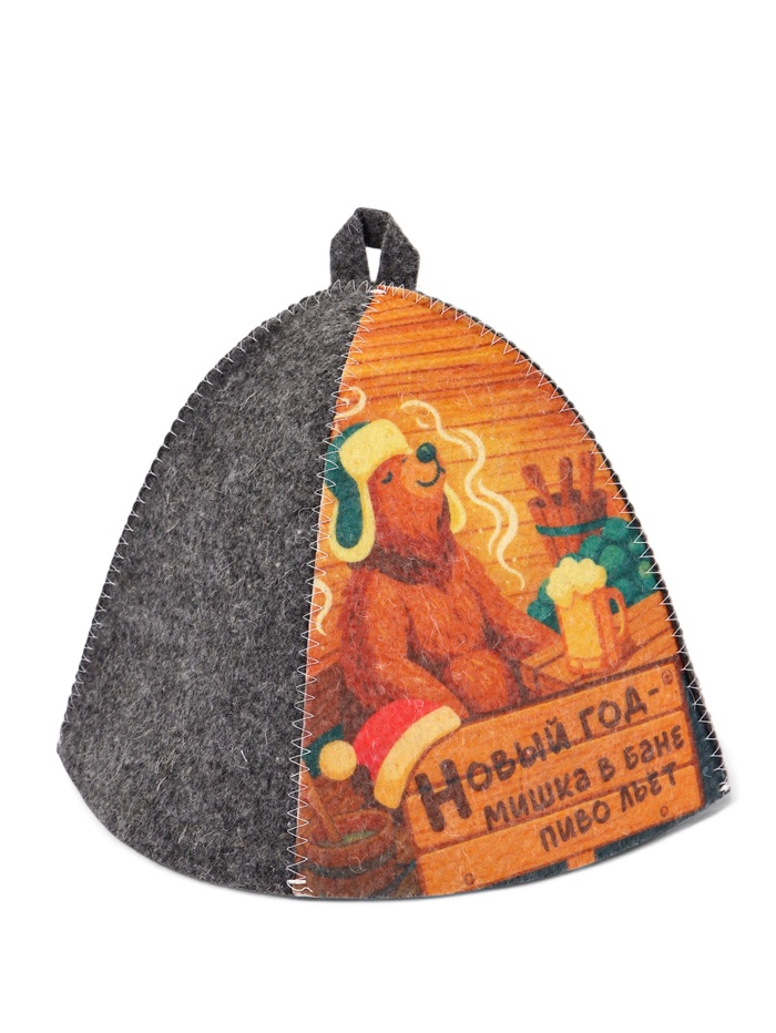 Шапка для бани и сауны «Новогодний мишка в бане», полиэфир 70%, шерсть 30%, «Добропаровъ» — Характеристики