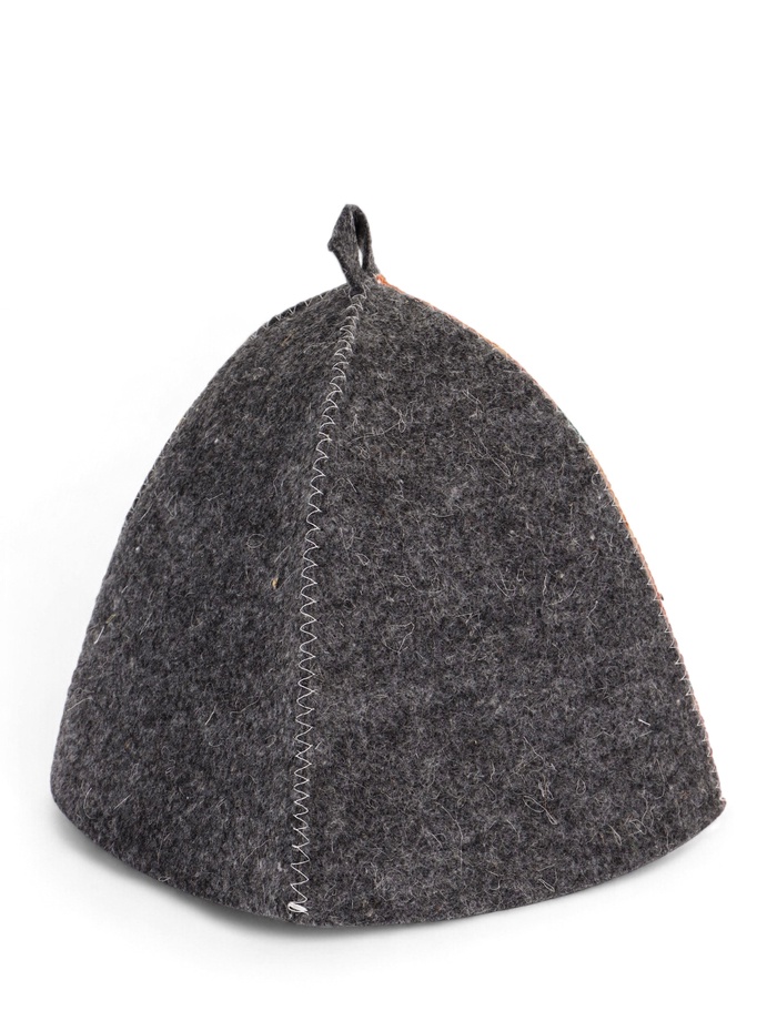 • Практичный тёмный цвет: тёмная основа шапки практична в использовании. На таком фоне не так заметны случайные капли воды или следы пара, что помогает сохранять опрятный вид после многих посещений бани.