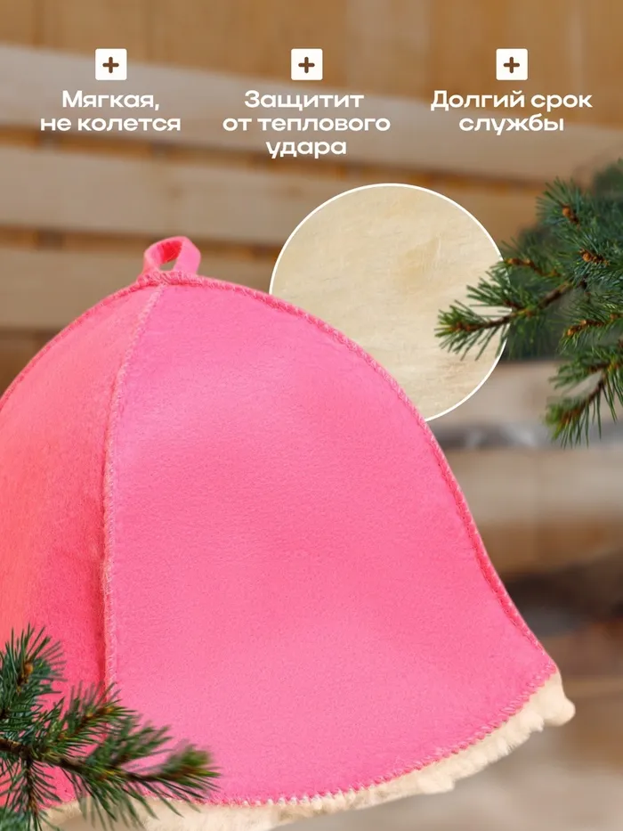 Шапка для бани из натуральной овчины, выполненная в нежно-розовом фетре, идеально подойдет для любительниц уюта и стиля. Содержание шерсти — 100%, что обеспечивает превосходные теплоизоляционные свойства. Простой, но элегантный дизайн без рисунка подходит для женщин и доступен в размерах от 55 до 60. Светлый оттенок розового добавляет образу женственности и легкости. Этот аксессуар станет не только полезным, но и стильным дополнением к вашим банным процедурам.