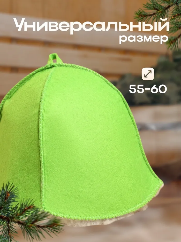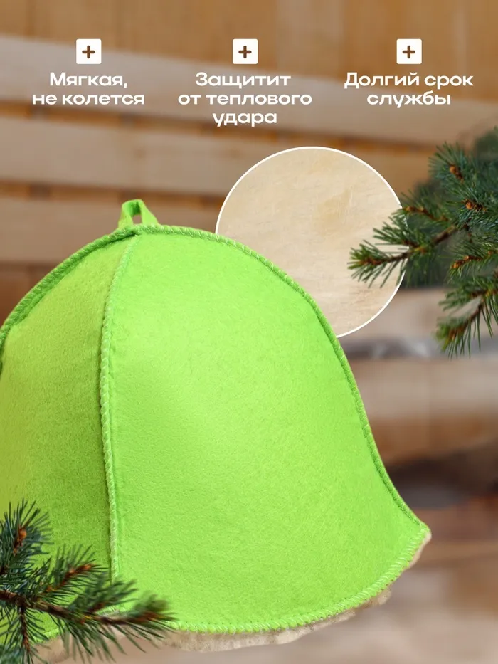 Шапка для бани и сауны, овчина, зелёная — Характеристики