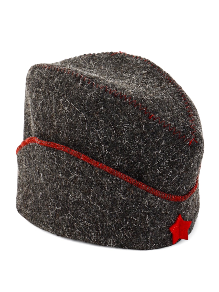 Банная шапка «Пилотка» из шерсти и полиэфира — стильный аксессуар, который сочетает функциональность традиционной шапки для парной с оригинальным военным дизайном. Универсальная модель подходит и мужчинам, и женщинам.