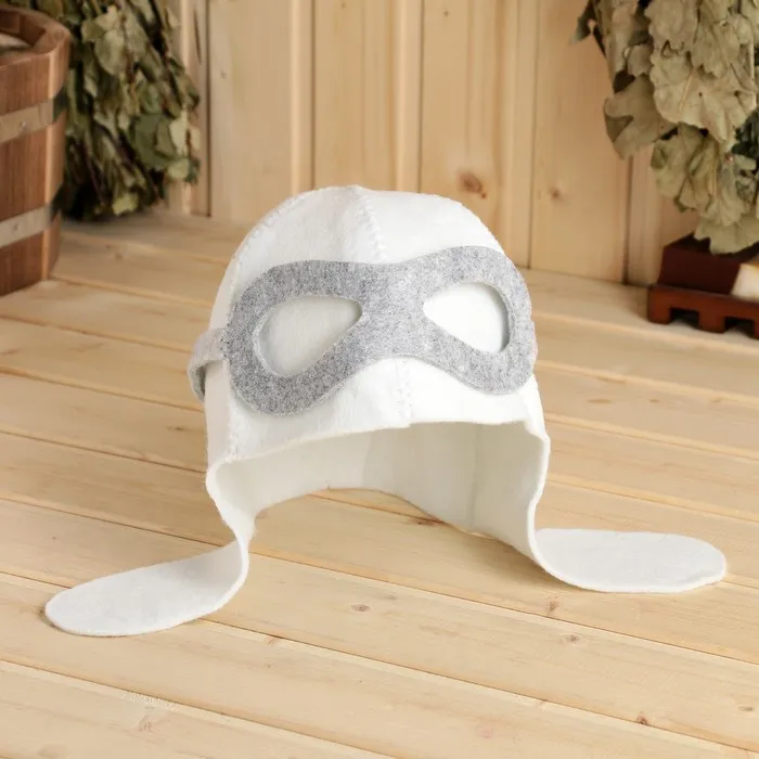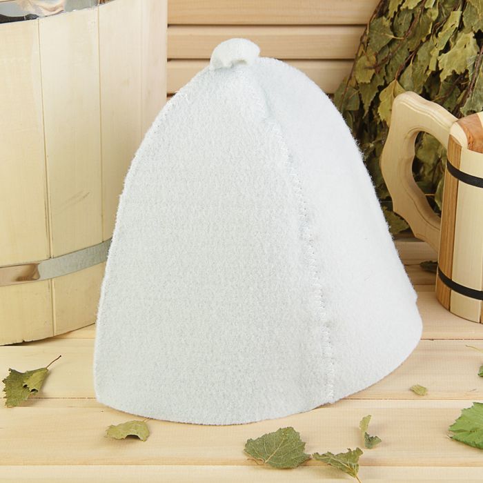 Шапка для бани и сауны, полиэфир 70%, шерсть 30%, белая