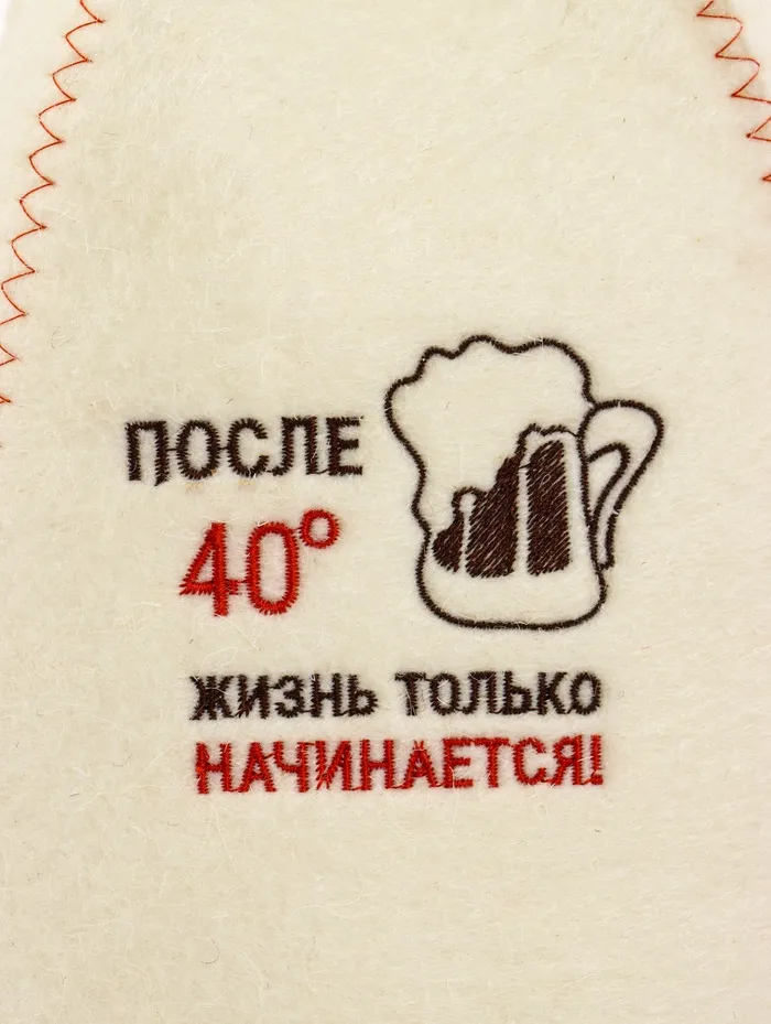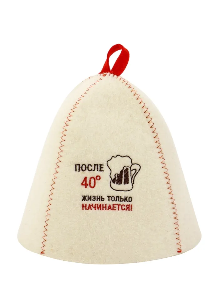 Банная шапка «После 40 градусов жизнь только начинается» из шерсти и полиэфира — аксессуар с забавной вышивкой, который превращает банный ритуал в особое состояние духа. Универсальная модель объединяет практичность с глубоким смыслом.
