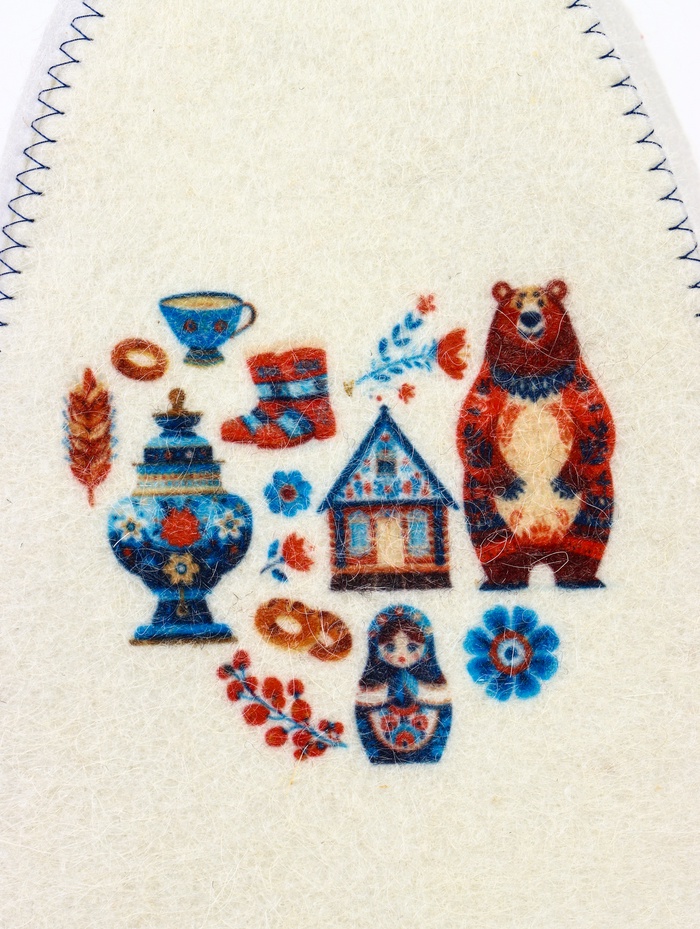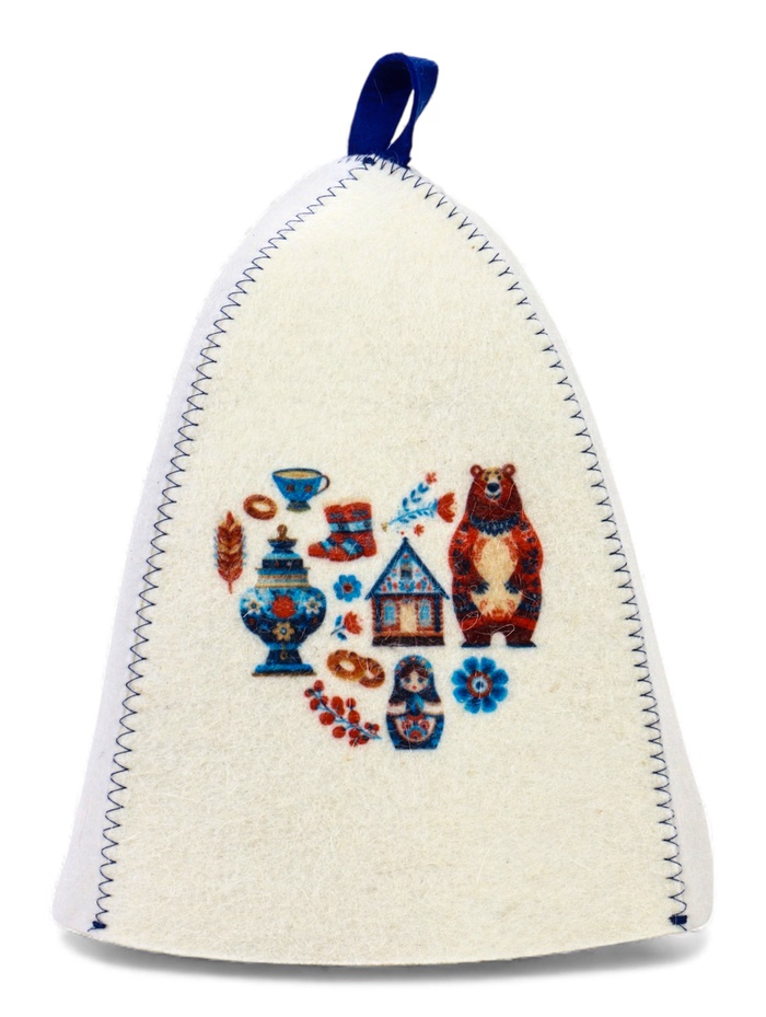 Банная шапка «Русские традиции» белая из шерсти и полиэфира — классический аксессуар для защиты в парной. Она выполняет основную функцию — предохраняет голову от перегрева, позволяя дольше наслаждаться жаром русской бани или сауны.