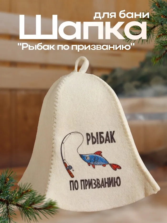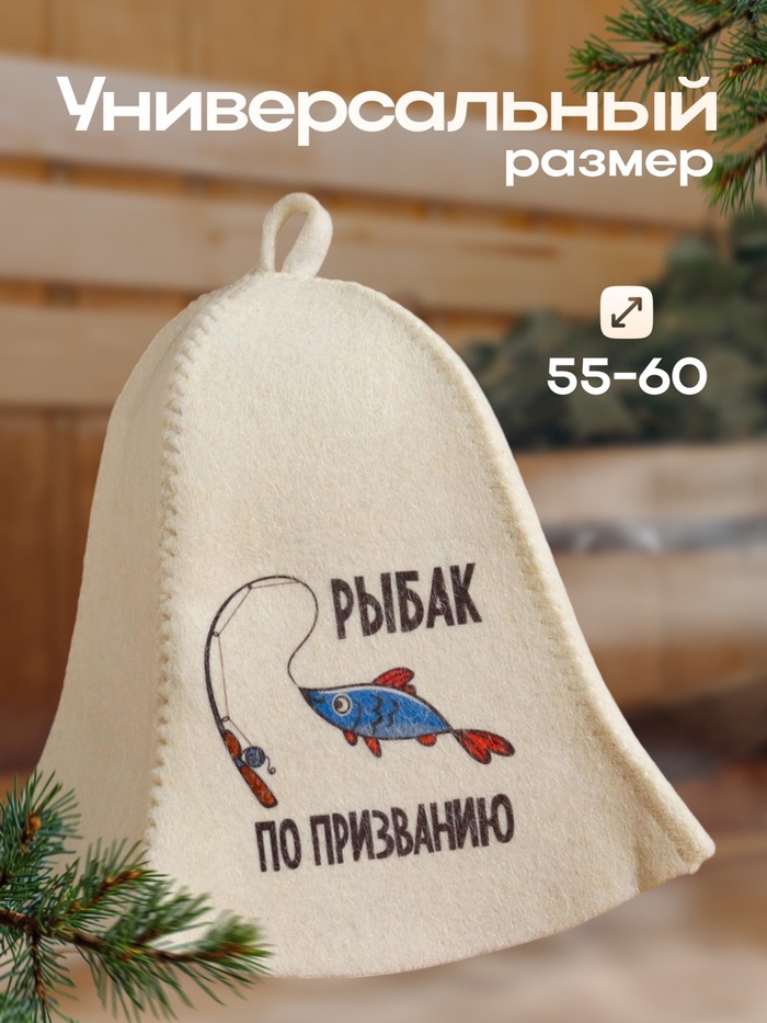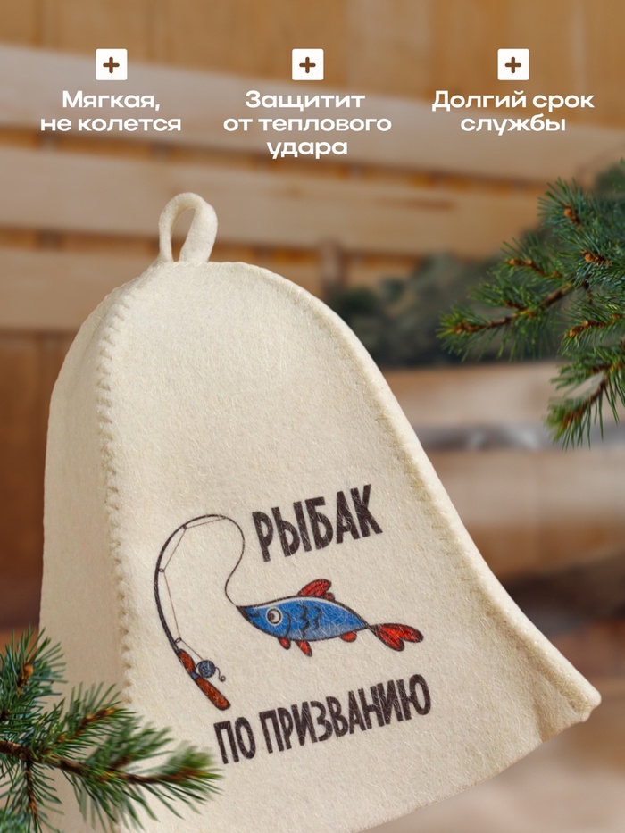 Шапка для бани и сауны «Рыбак по призванию», полиэфир 70%, шерсть 30%, с принтом, «Добропаровъ» — Характеристики
