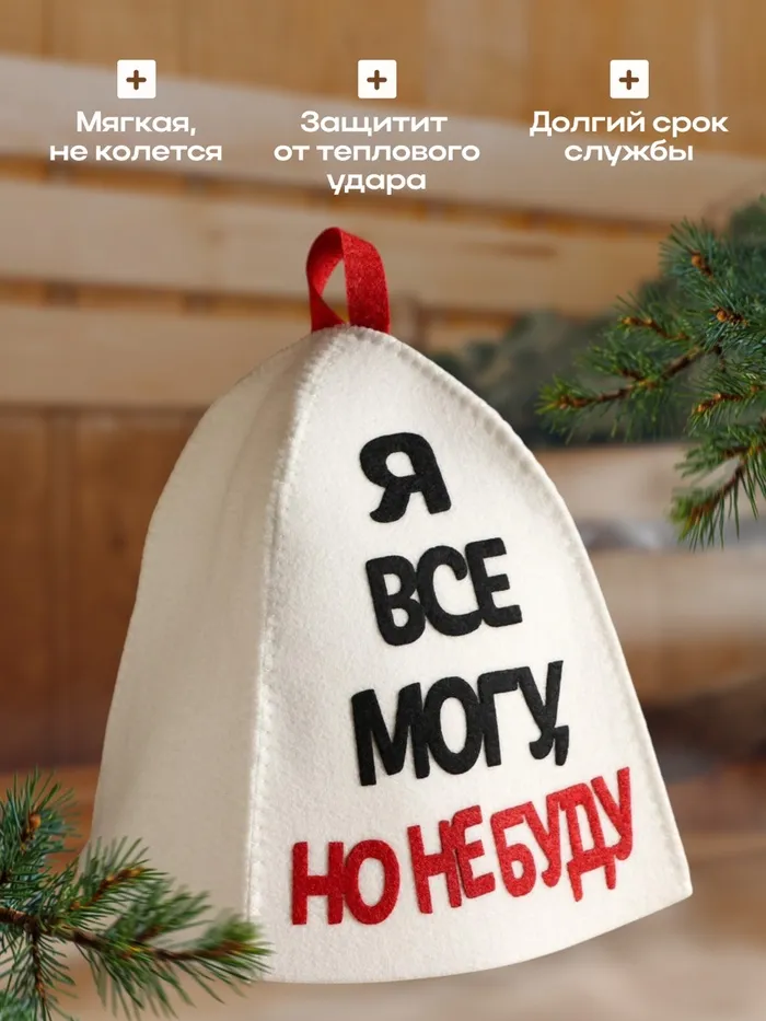 Шапка для бани и сауны, с аппликацией «Я все могу, но не буду», полиэфир — Характеристики
