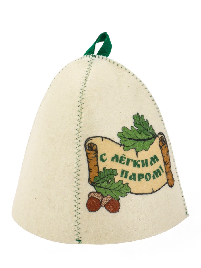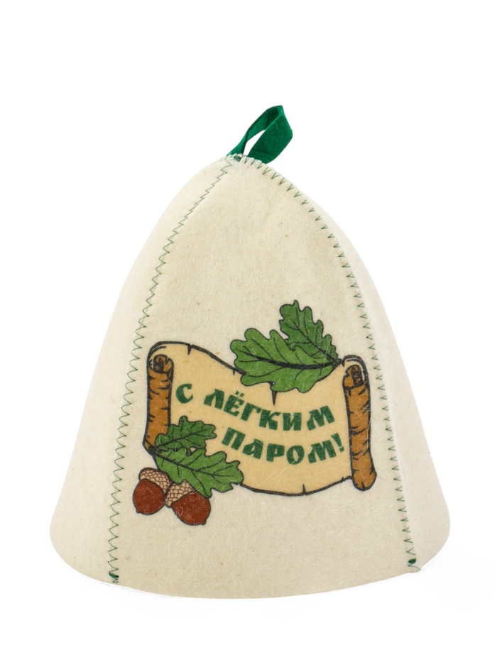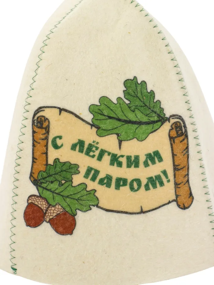 Банная шапка «С лёгким паром!» из шерсти и полиэфира — аксессуар, который объединяет практическую функциональность с выразительным принтом. Универсальная модель для тех, кто ценит аутентичные традиции.