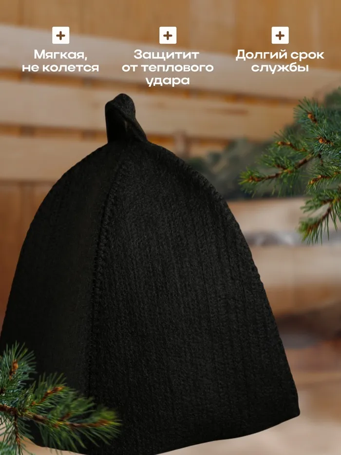 Шапка для бани и сауны, с прямым низом, полиэфир, чёрная — Характеристики
