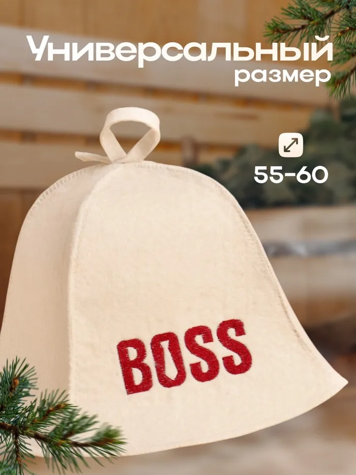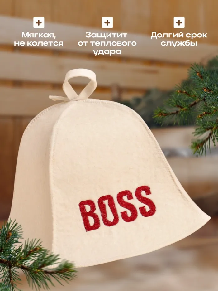 Шапка для бани и сауны с вышивкой BOSS, шерсть 100%, светлая, «Добропаровъ» — Характеристики