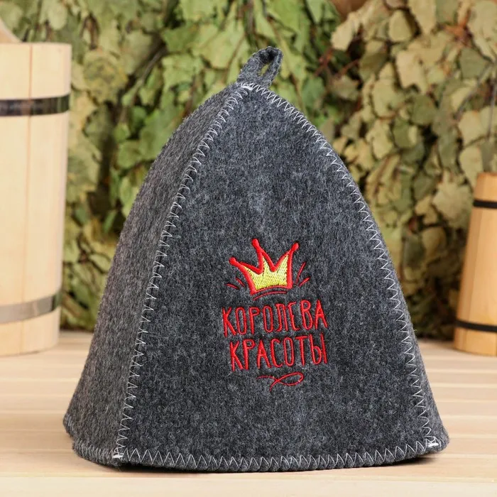Шапка для бани и сауны, с вышивкой «Королева красоты», серая, полиэфир 70%, шерсть 30%, «Добропаровъ» — Характеристики