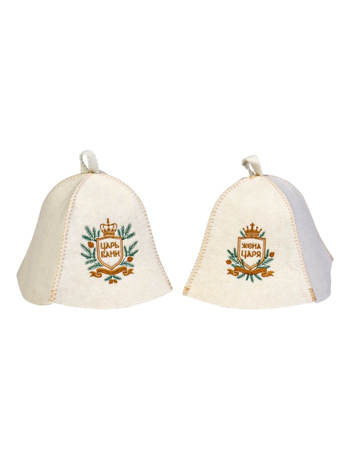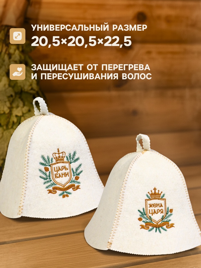 Набор банных шапок «Царский» 2 штуки — готовое решение для парной. Две парные шапки из шерсти и полиэфира подходят для совместного посещения бани.
