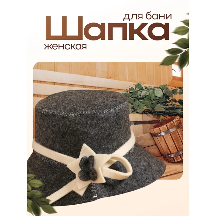 Банная шапка «Веник» из шерсти и полиэфира — надежная защита от перегрева, которая создает идеальный микроклимат для комфортного парения.