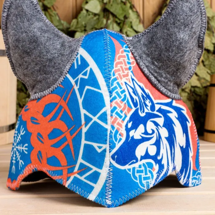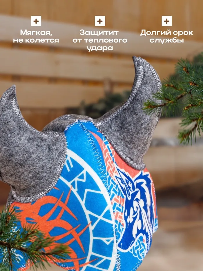Шапка для бани и сауны «Викинг с волком», войлок, синий, «Добропаровъ» — Характеристики