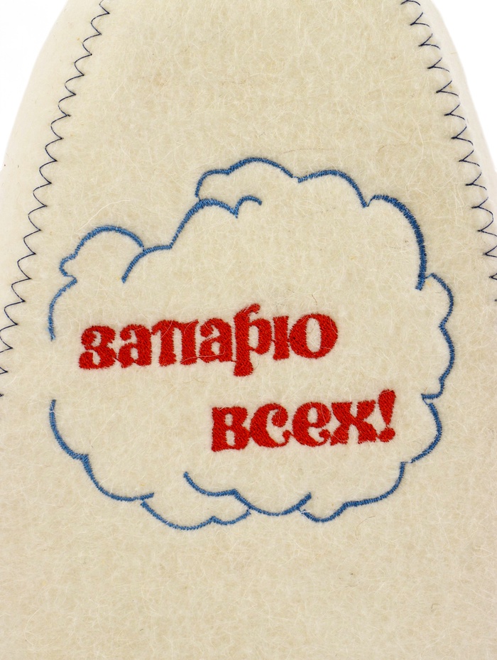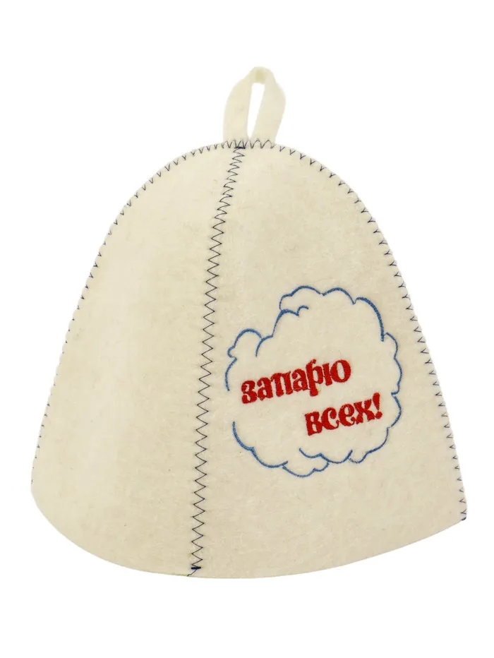 Банная шапка «Запарю всех!» из шерсти и полиэфира — аксессуар с юмористичной вышивкой, создающий настроение настоящего банщика. Универсальная модель сочетает практичность с выразительным стилем.