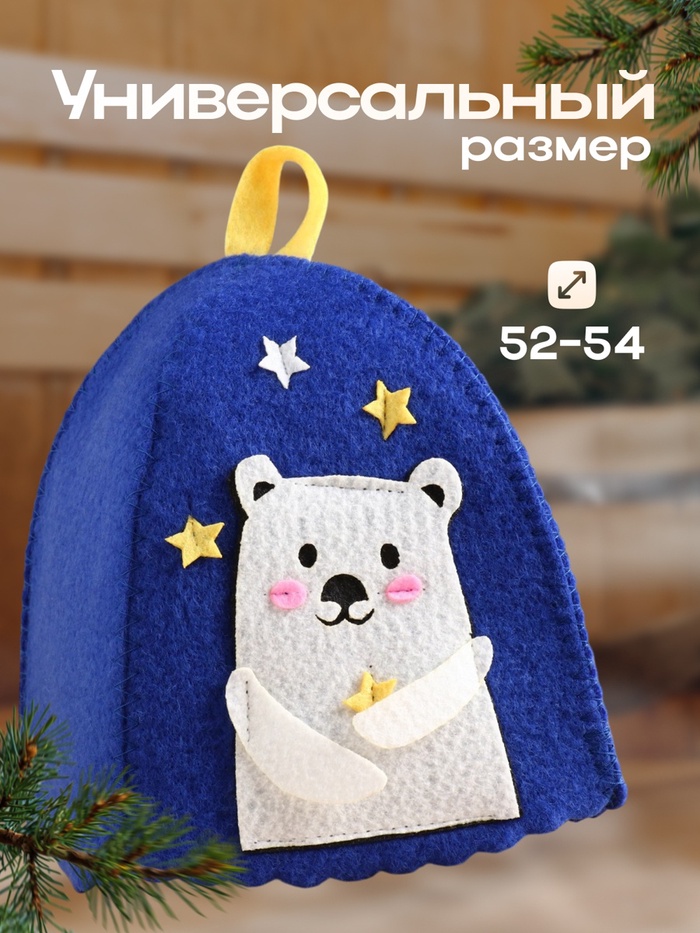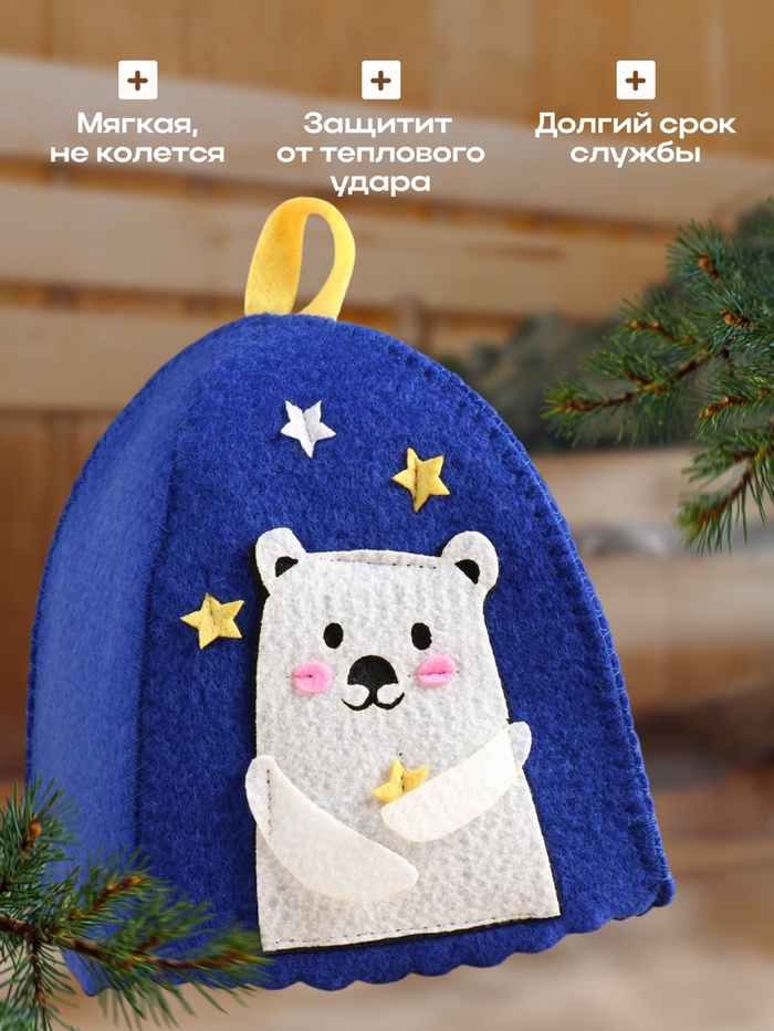Шапка для бани и сауны «Застенчивый мишка», полиэстер, детская, синяя — Характеристики