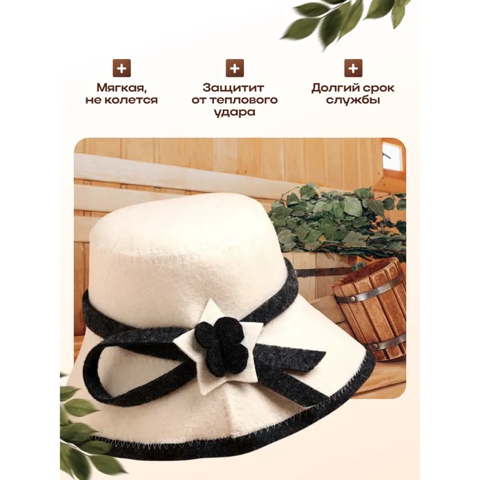 Шапка для бани и сауны женская, с аппликацией, полиэфир 70%, шерсть 30%, «Добропаровъ» — Характеристики