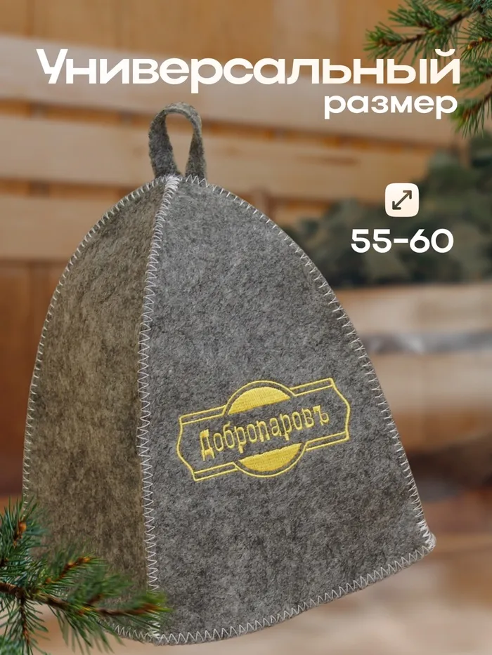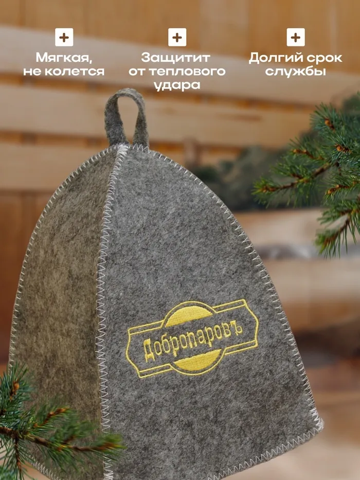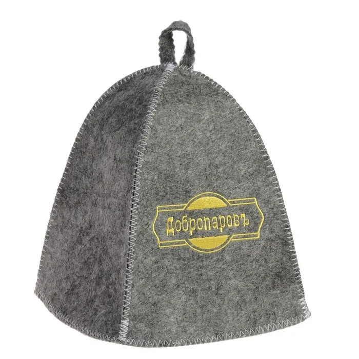 Шапка для бани классическая, серая с золотой вышивкой "ДОБРОПАРОВЪ" — Характеристики