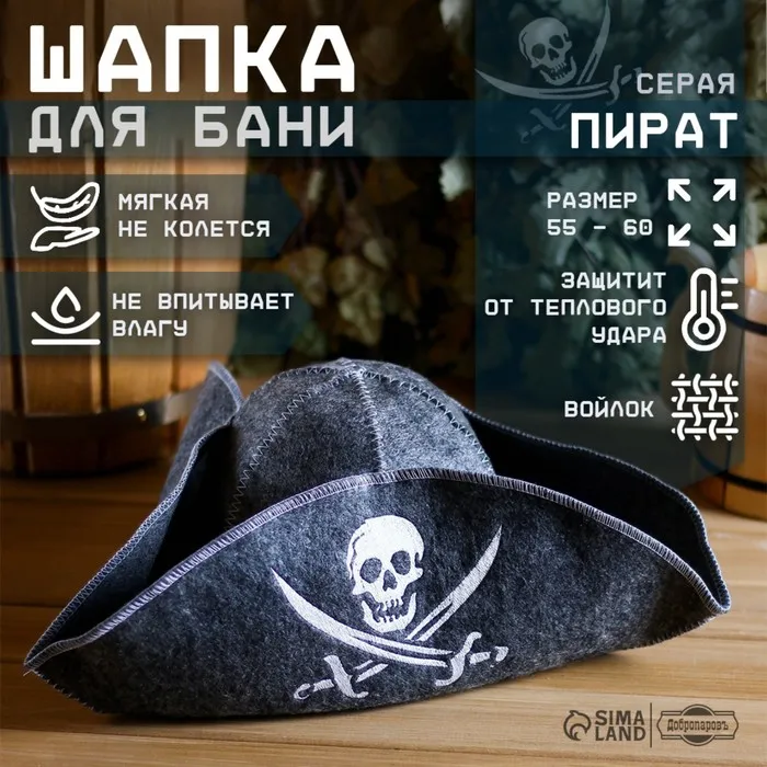 Шапка для бани "Ковбойская", войлок, серая — Характеристики