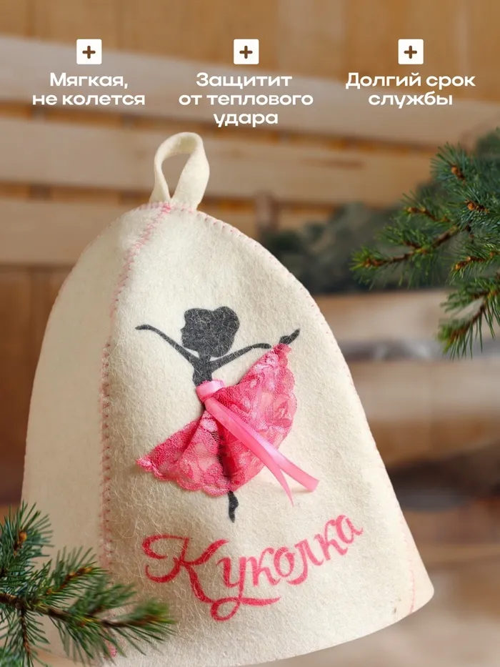 Шапка для бани "Куколка", принт, войлок — Характеристики