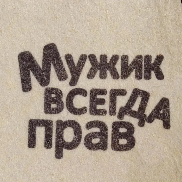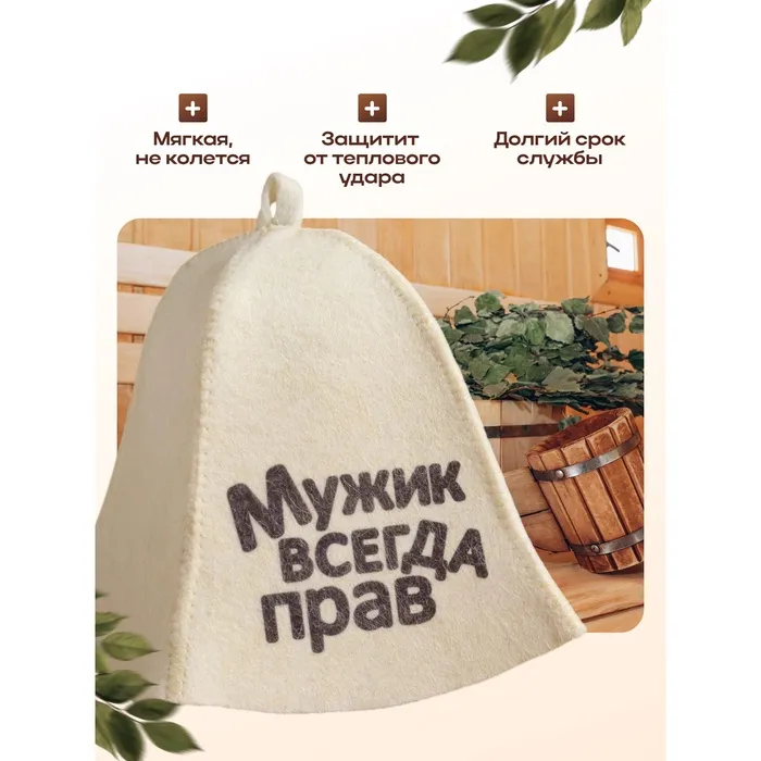 Шапка для бани "Мужик всегда прав" с принтом, белая — Характеристики