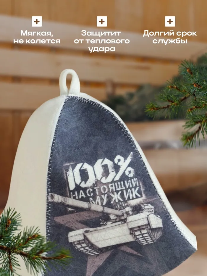 Шапка для бани «100% мужик» — это не просто аксессуар, а яркий атрибут настоящего мужчины! Изготовлена из натуральной шерсти (70%), шапка дарит комфорт и тепло в любых условиях. Уникальный принт подчеркнет мужественность и станет отличным подарком на 23 Февраля. Универсальный размерный ряд (55–60) и разнообразие цветов позволят каждому выбрать идеальный вариант. Надежная, стильная и функциональная — шапка, которая станет незаменимой частью ваших банных процедур.