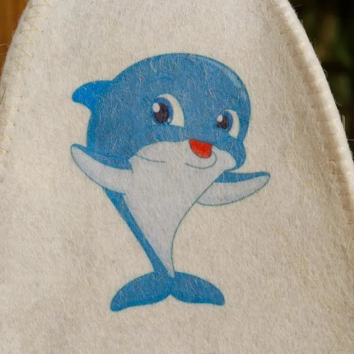 Шапка для бани с детским принтом "Дельфин" , белая — Характеристики
