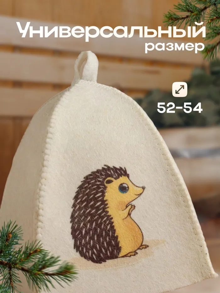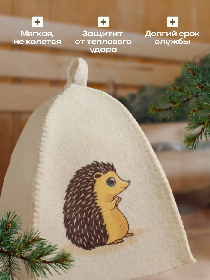 Шапка для бани с детским принтом "Ёжик" , белая — Характеристики